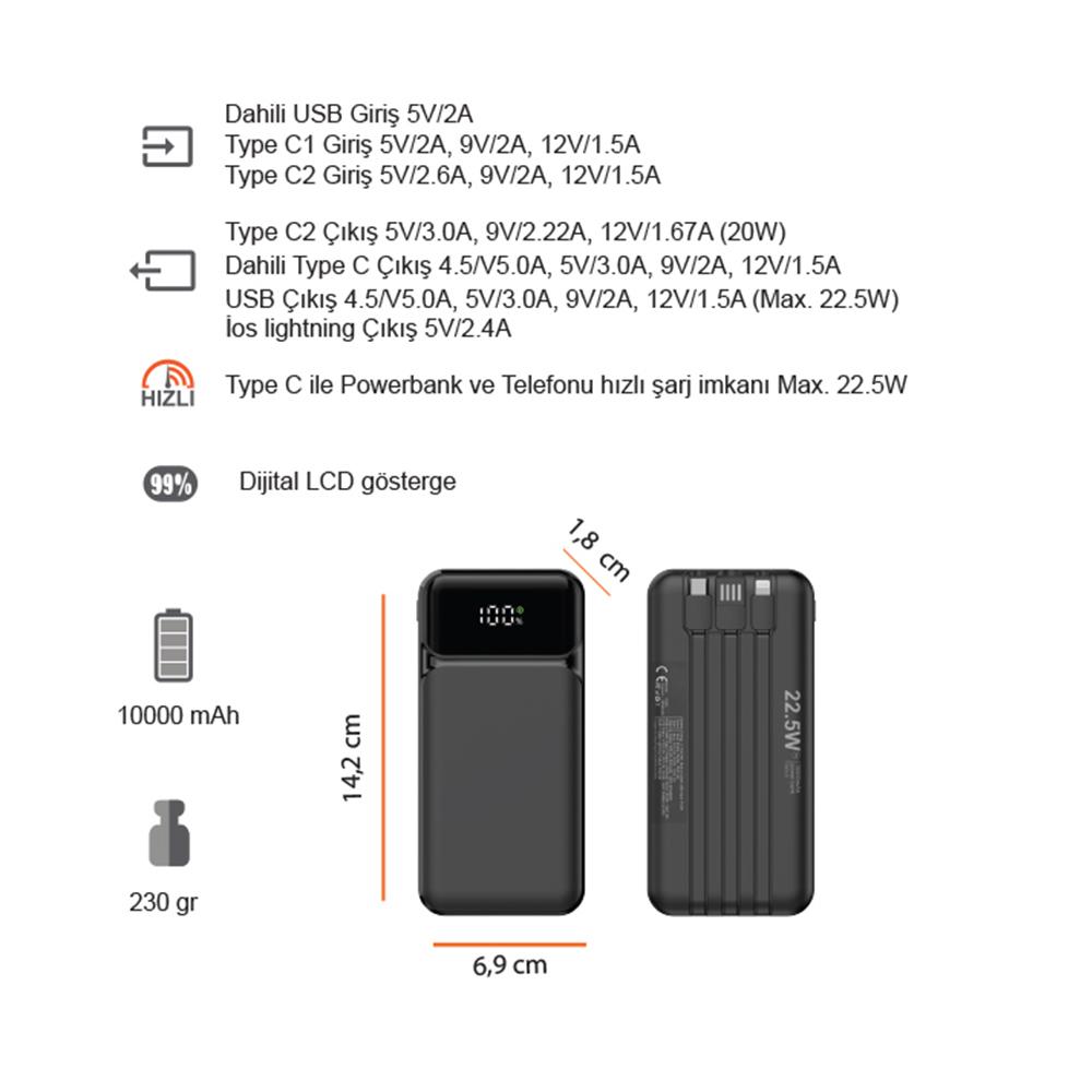 Hızlı Şarj Powerbank 10000 mAh